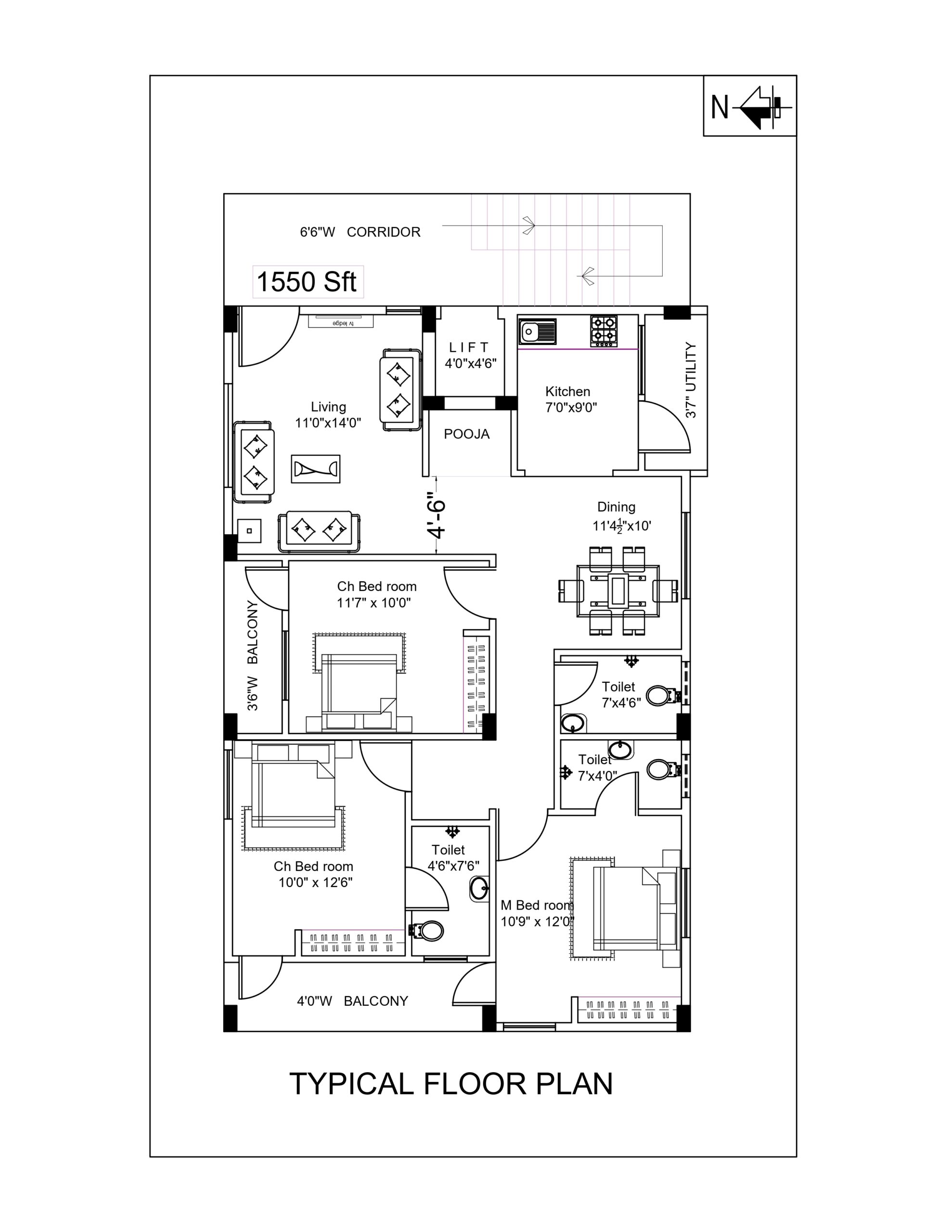 Childrens Bedroom 10’0”x12’6” Toilet 4’6”x7’6” With balcony W4’0”